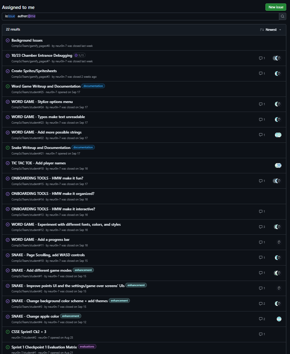 Here are all the issues I authored throughout CSSE 1: